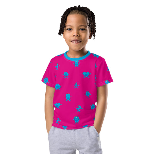 Kids t-shirt Blue Monsters Pink crew neck